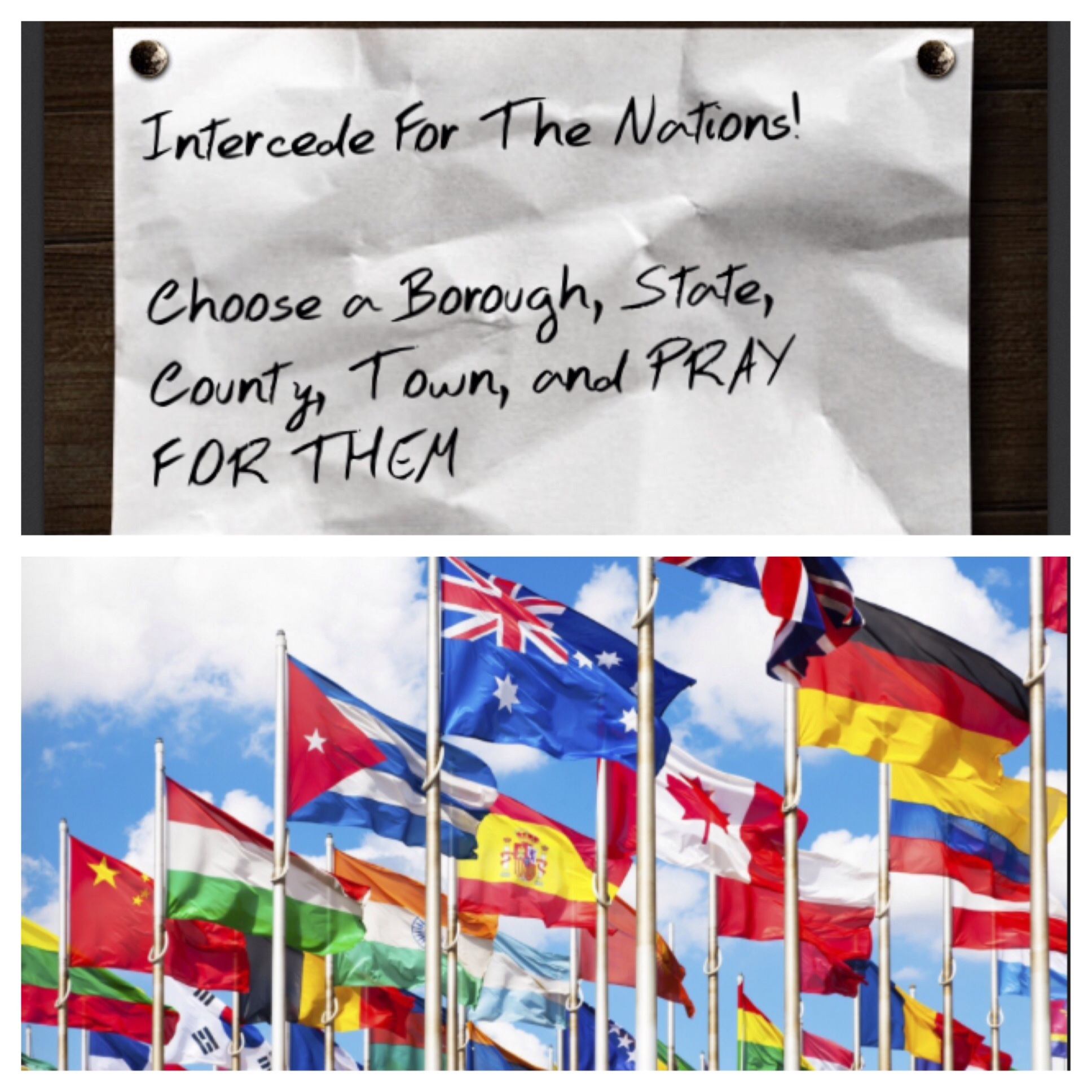 He has laid it upon my heart again and now I’m asking you to please choose any state, any borough, any town, any county to intercede for.
