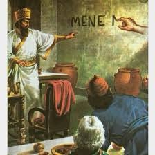 26 This is the interpretation of each word. MENE: God has numbered your kingdom, and finished it; 27 TEKEL: You have been weighed in the balances, and found wanting; 28 PERES: Your kingdom has been divided, and given to the Medes and Persians.”
